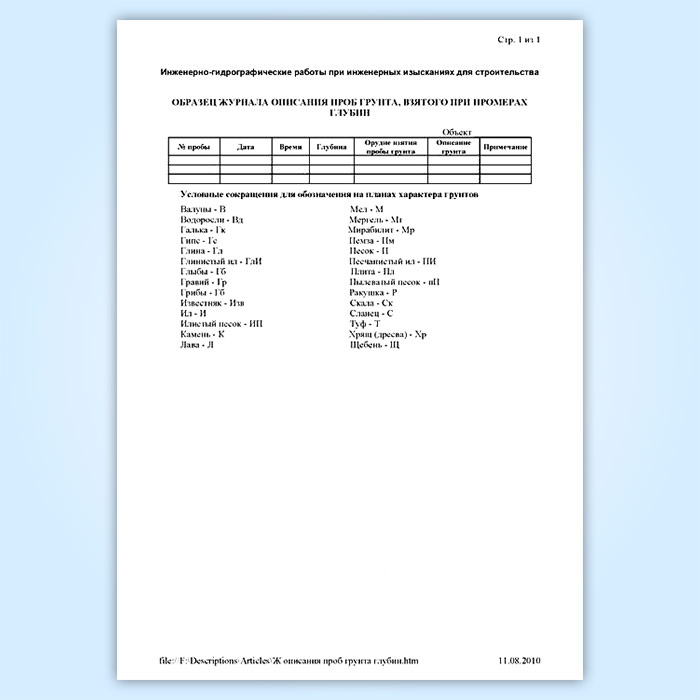 Журнал описания проб грунта, взятого при промерах в Бердске купить