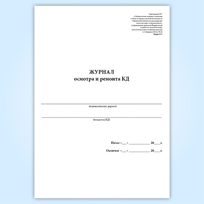 Журнал осмотра и ремонта канатной дороги. Несущий канат (форма № 1) в Бердске купить