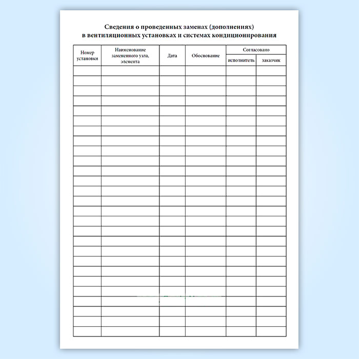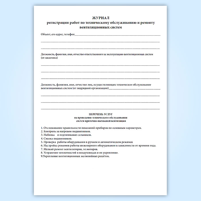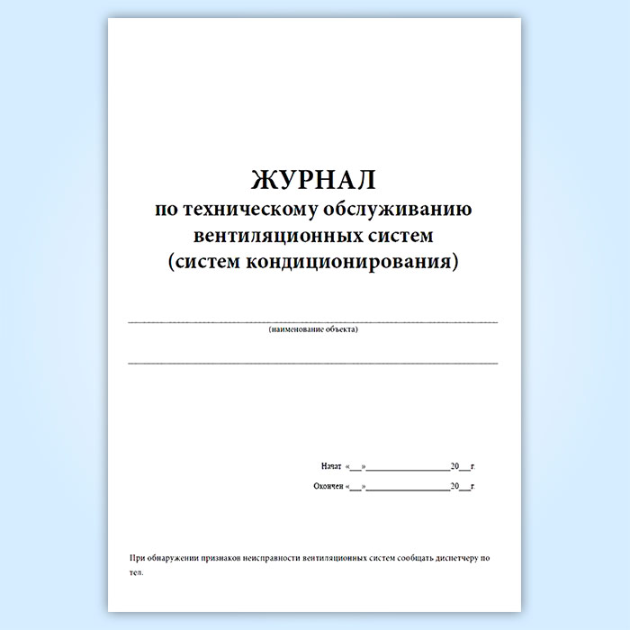 Журнал по техническому обслуживанию вентиляционных систем (систем кондиционирования) в Бердске купить