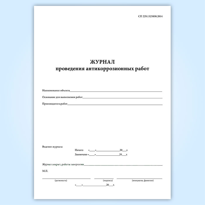Журнал проведения антикоррозионных работ. СП 229.1325800.2014 в Бердске купить