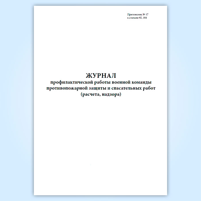 Журнал профилактической работы военной команды противопожарной защиты и спасательных работ (расчета, надзора) в Бердске купить