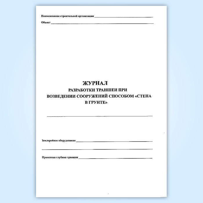 Журнал разработки траншеи при возведении сооружений способом «стена в грунте» в Бердске купить