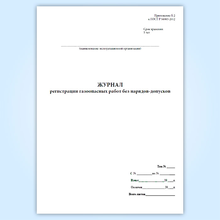 Журнал регистрации газоопасных работ без нарядов-допусков в Бердске купить