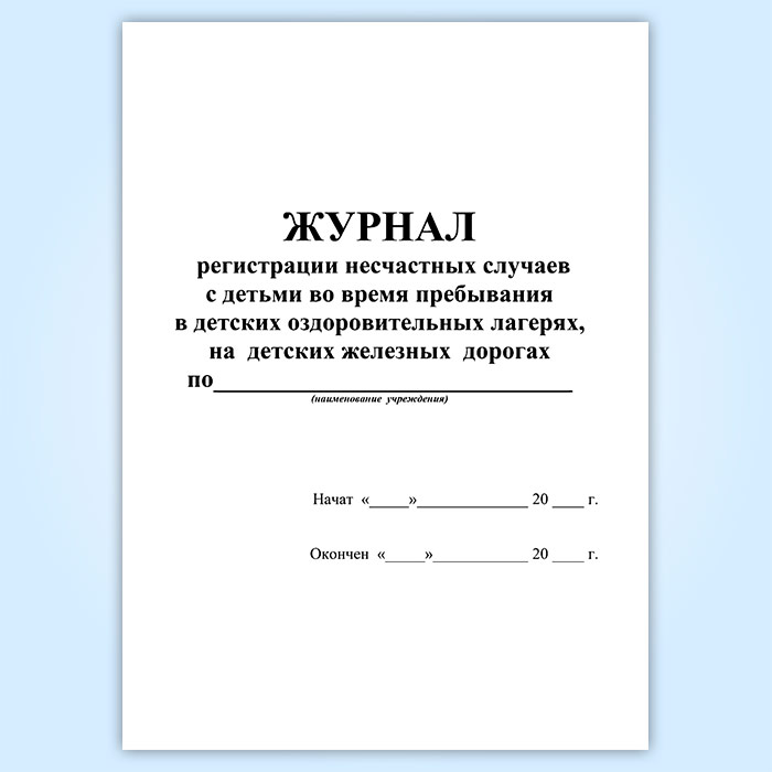Журнал регистрации несчастных случаев с детьми во время пребывания в детских оздоровительных лагерях, на детских железных дорогах в Бердске купить