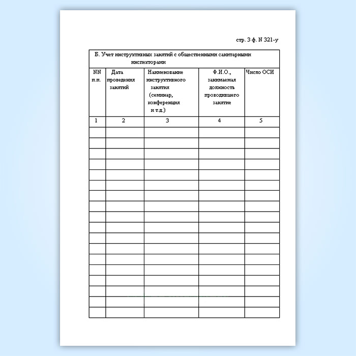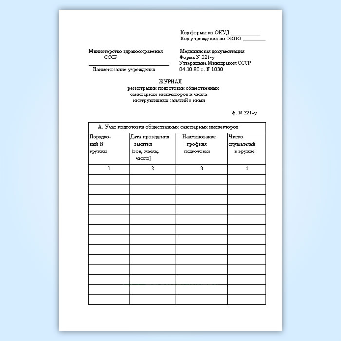 Журнал регистрации подготовки общественных санитарных инспекторов и числа инструктивных занятий с ними (форма № 321-у) в Бердске купить