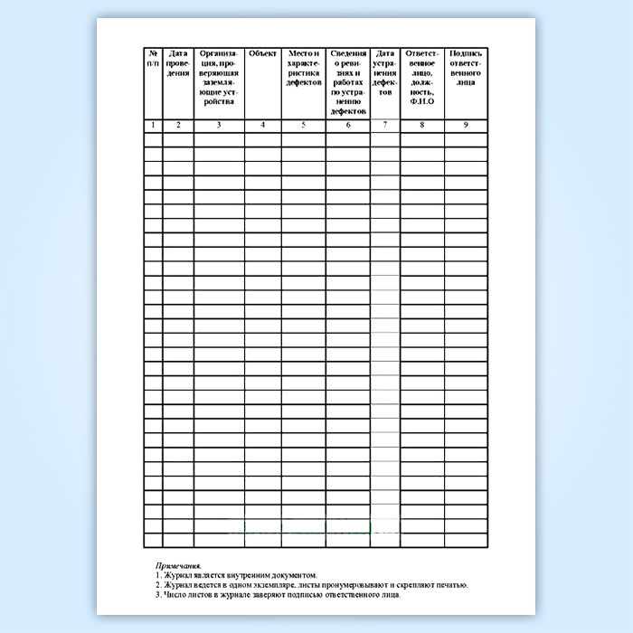 Журнал результатов ревизий устройств молниезащиты, проверочных испытаний заземляющих устройств (форма Б.30) в Бердске купить