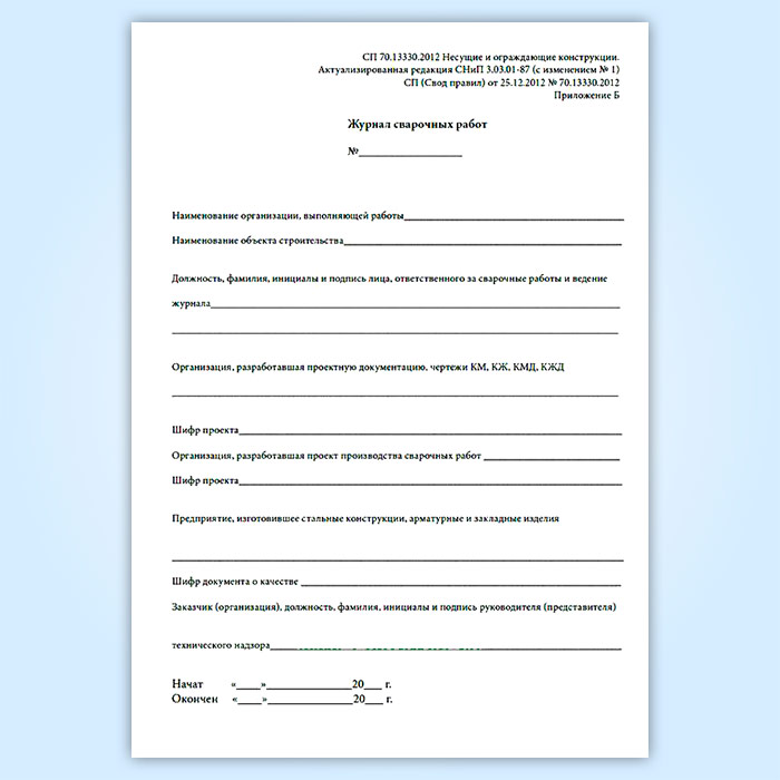 Журнал сварочных работ (приложение к СП 70.13330.2012) в Бердске купить