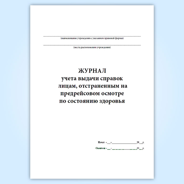 Журнал учета выдачи справок лицам, отстраненным на предрейсовом осмотре по состоянию здоровья в Бердске купить