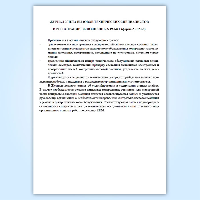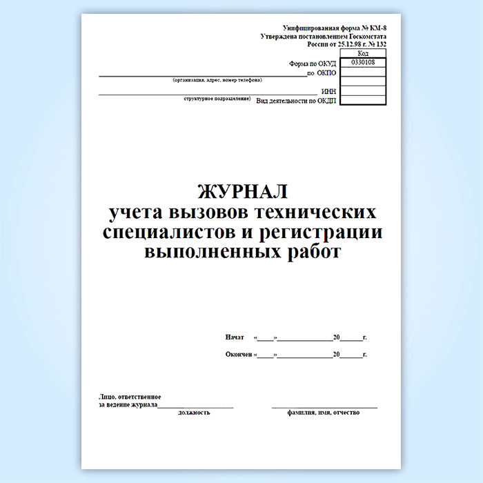 Журнал учета вызовов технических специалистов и регистрации выполненных работ (форма КМ-8) в Бердске купить