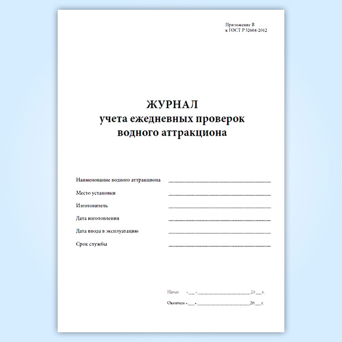 Журнал учета ежедневных проверок водного аттракциона в Бердске купить