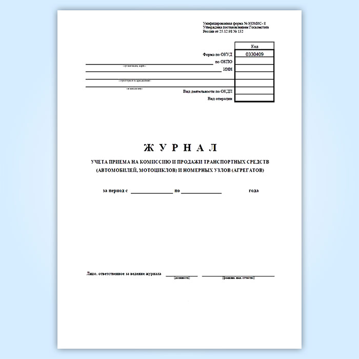 Журнал учета приема на комиссию и продажи транспортных средств (автомобилей, мотоциклов) и номерных узлов (агрегатов) (форма № КОМИС-8) в Бердске купить