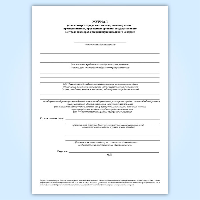 Журнал учета проверок юридического лица, индивидуального предпринимателя, проводимых органами государственного контроля (надзора), органами муниципального контроля (новый) в Бердске купить
