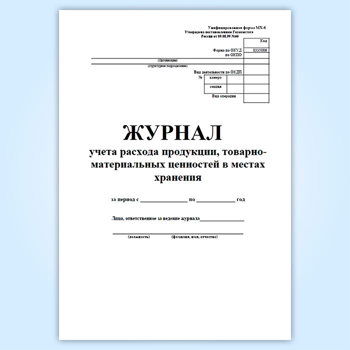 Журнал учета расхода продукции, товарно-материальных ценностей в местах хранения (форма МХ-6) в Бердске купить