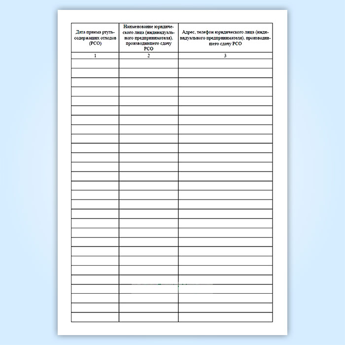 Журнал учета ртутьсодержащих отходов, принятых на утилизацию в Бердске купить