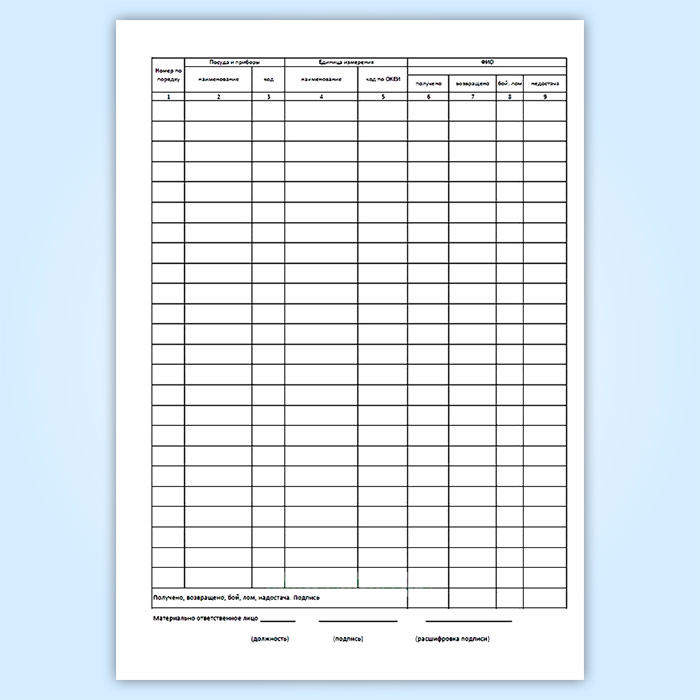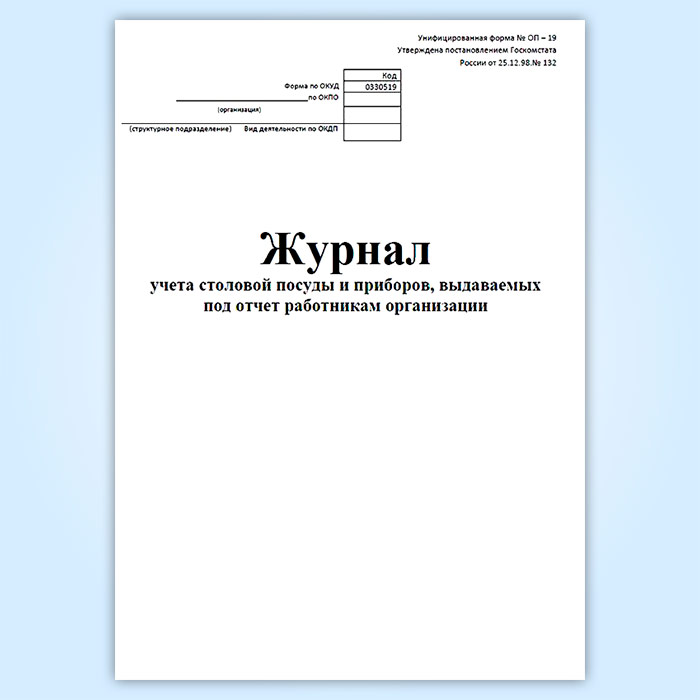 Журнал учета столовой посуды и приборов, выдаваемых под отчет работникам организации (форма № ОП-19) в Бердске купить