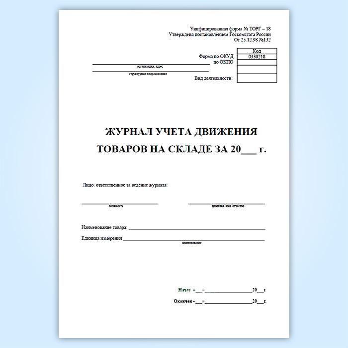 Журнал учета товаров на складе (форма ТОРГ-18) в Бердске купить