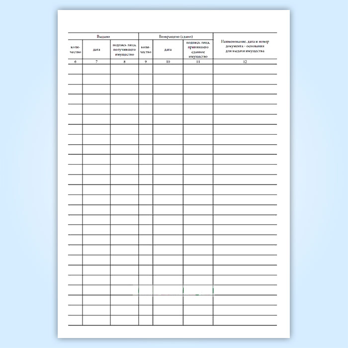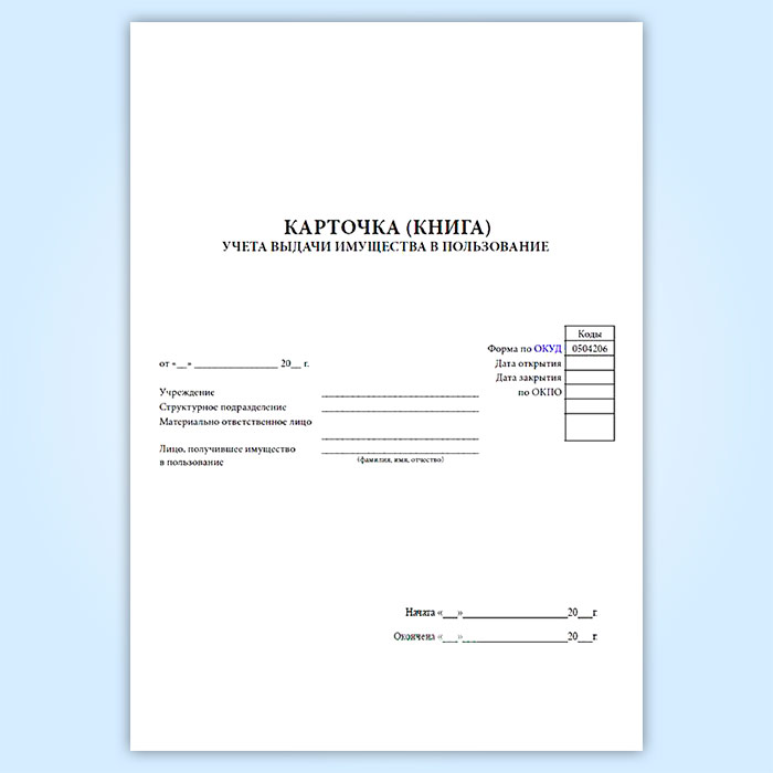 Карточка (книга) учета выдачи имущества в пользование (форма по ОКУД 0504206) в Бердске купить
