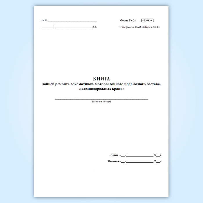 Книга записи ремонта локомотивов, моторвагонного подвижного состава железнодорожных кранов (ТУ-28) в Бердске купить