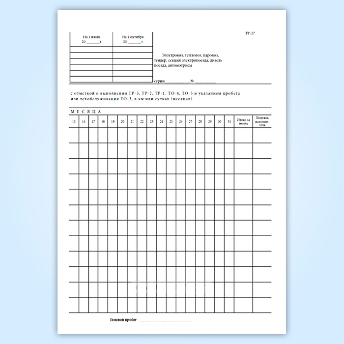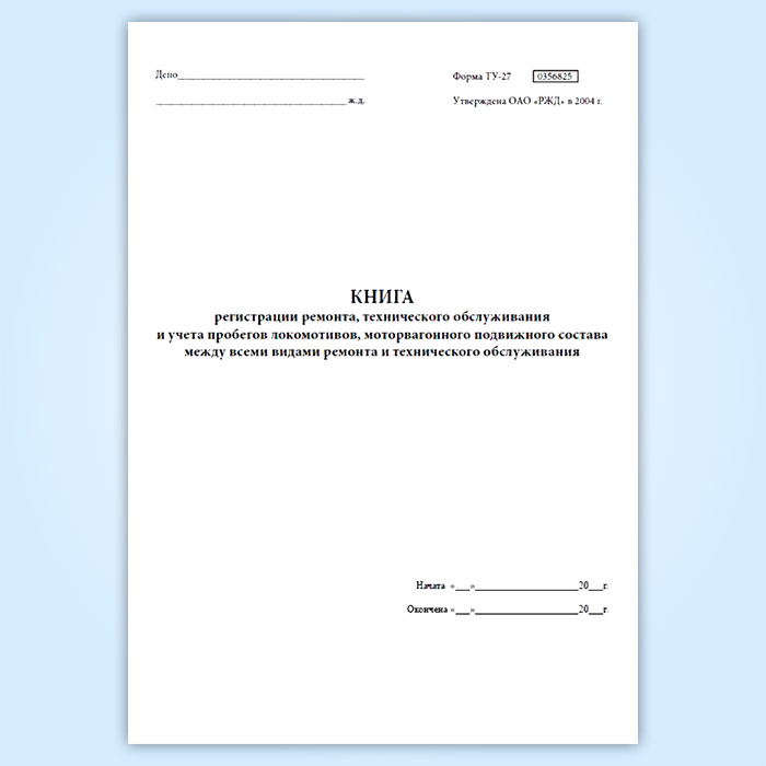 Книга регистрации ремонта, технического обслуживания и учета пробегов локомотивов, моторвагонного подвижного состава между всеми видами ремонта и технического обслуживания (форма ТУ-27) в Бердске купить