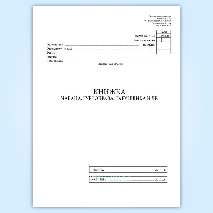 Книжка чабана, гуртоправа, табунщика и др. (форма № СП-50) в Бердске купить