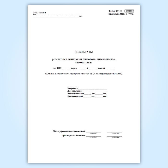 Результаты реостатных испытаний тепловоза, дизель-поезда, автомотрисы (форма ТУ-148) в Бердске купить