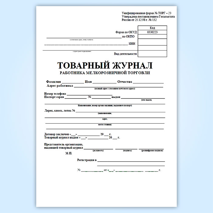 Товарный журнал работника мелкорозничной торговли (форма № ТОРГ-23) в Бердске купить