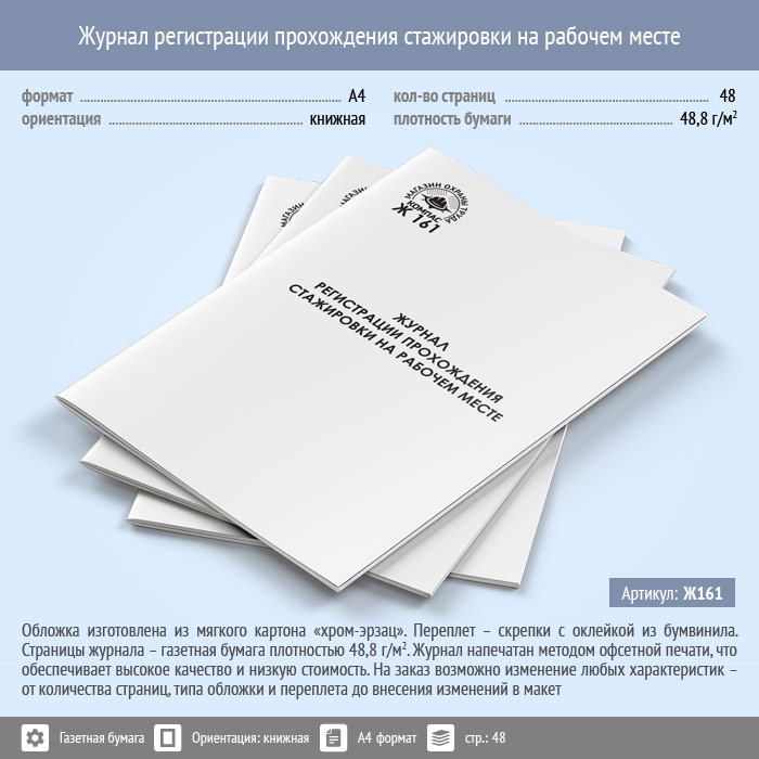 Журнал регистрации прохождения стажировки на рабочем месте (48 стр., Ж161) в Бердске купить