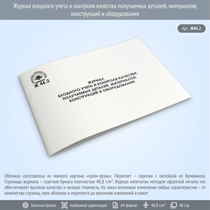 Журнал входного учета и контроля качества получаемых деталей, материалов, конструкций и оборудования (Ж46.2, 48 стр.) в Бердске купить
