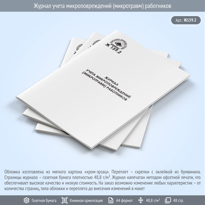 Журнал учета микроповреждений (микротравм) работников (48 стр., Ж159.2) в Бердске купить