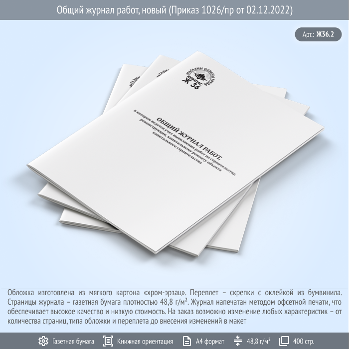 Общий журнал работ, новый (Приказ 1026/пр от 02.12.2022, 400 стр., Ж36.2) в Бердске купить