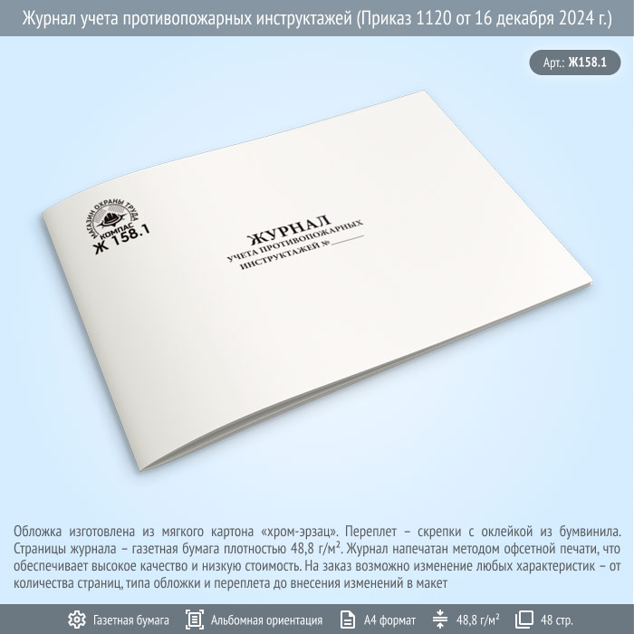 Журнал учета противопожарных инструктажей (Приказ 1120 от 16 декабря 2024 г.) (48 стр., Ж158.1) в Бердске купить