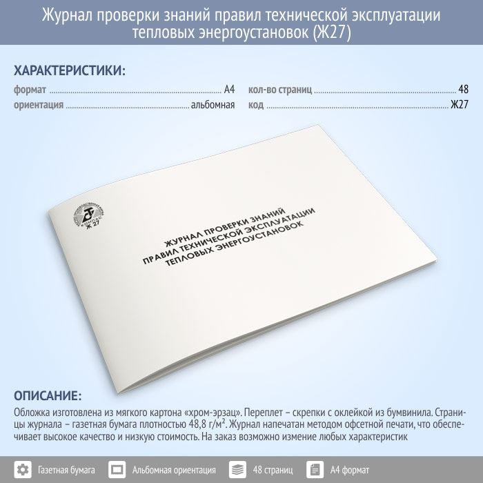 Журнал проверки знаний правил технической эксплуатации тепловых энергоустановок (48 стр., Ж27) в Бердске купить
