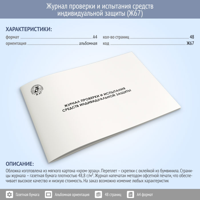 Журнал проверки и испытания средств индивидуальной защиты (48 стр., Ж67) в Бердске купить