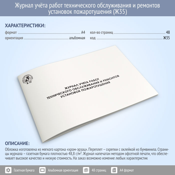 Журнал учета работ технического обслуживания и ремонтов установок пожаротушения (48 стр., Ж35) в Бердске купить