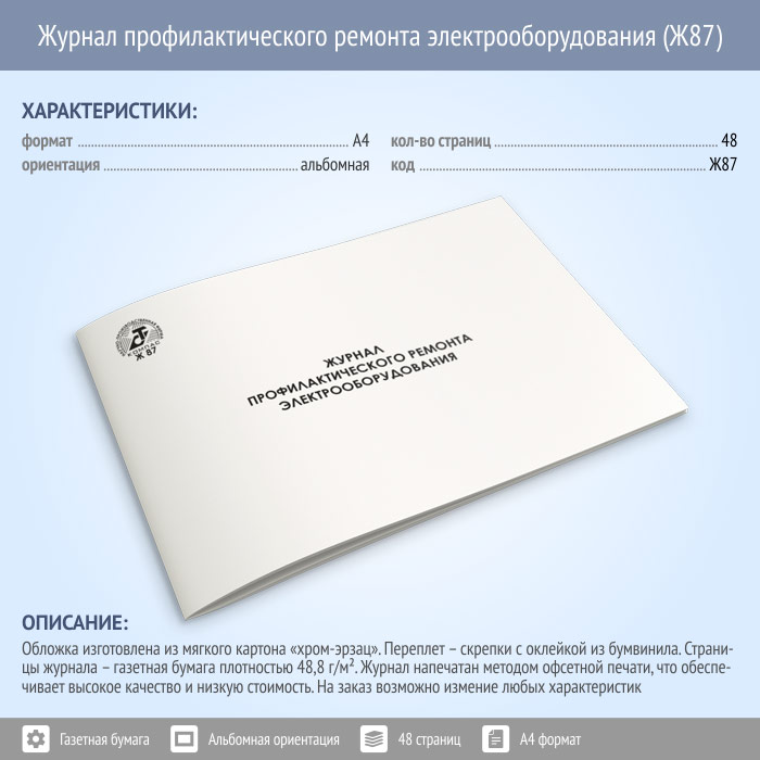Журнал профилактического ремонта электрооборудования (48 стр., Ж87) в Бердске купить