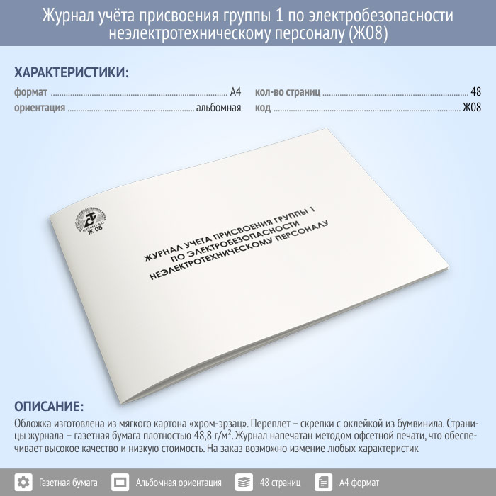 Журнал учета присвоения группы 1 по электробезопасности неэлектротехническому персоналу (48 стр., Ж08) в Бердске купить