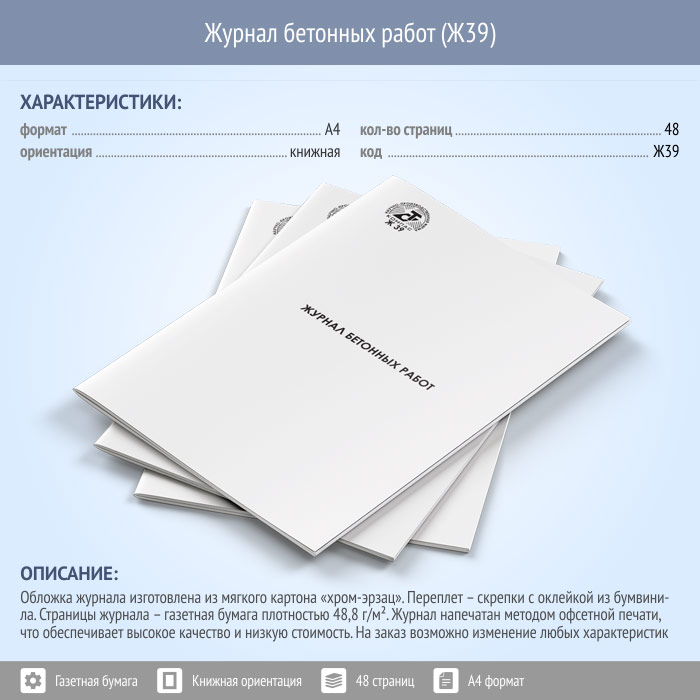 Журнал бетонных работ (48 стр., Ж39) в Бердске купить