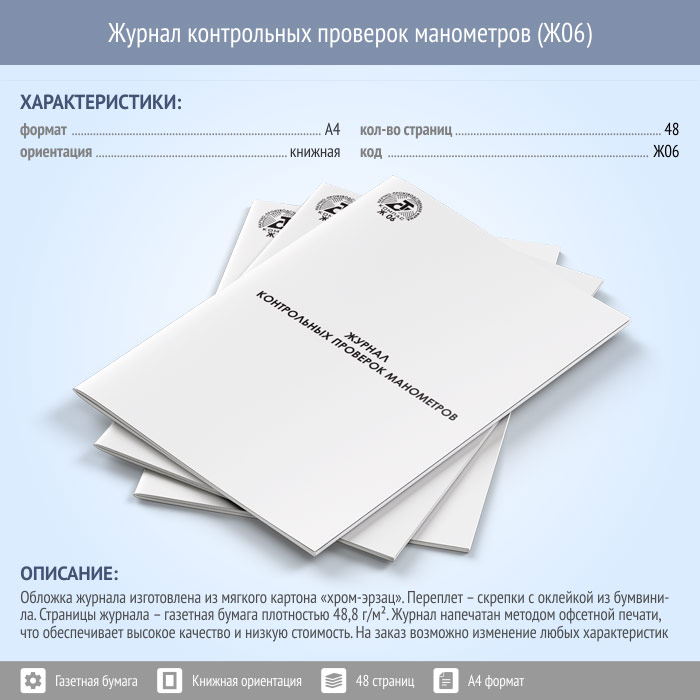 Журнал контрольных проверок манометров (КИП) (48 стр., Ж06) в Бердске купить