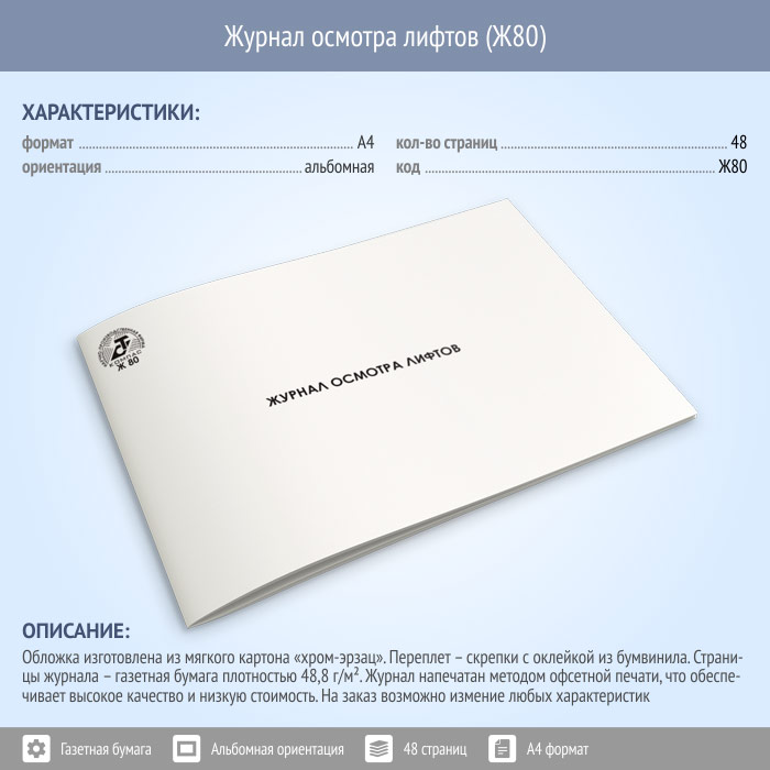 Журнал осмотра лифтов (48 стр., Ж80) в Бердске купить