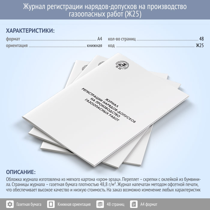 Журнал регистрации нарядов-допусков на производство газоопасных работ (48 стр., Ж25) в Бердске купить