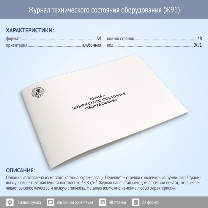 Журнал технического состояния оборудования (48 стр., Ж91) в Бердске купить