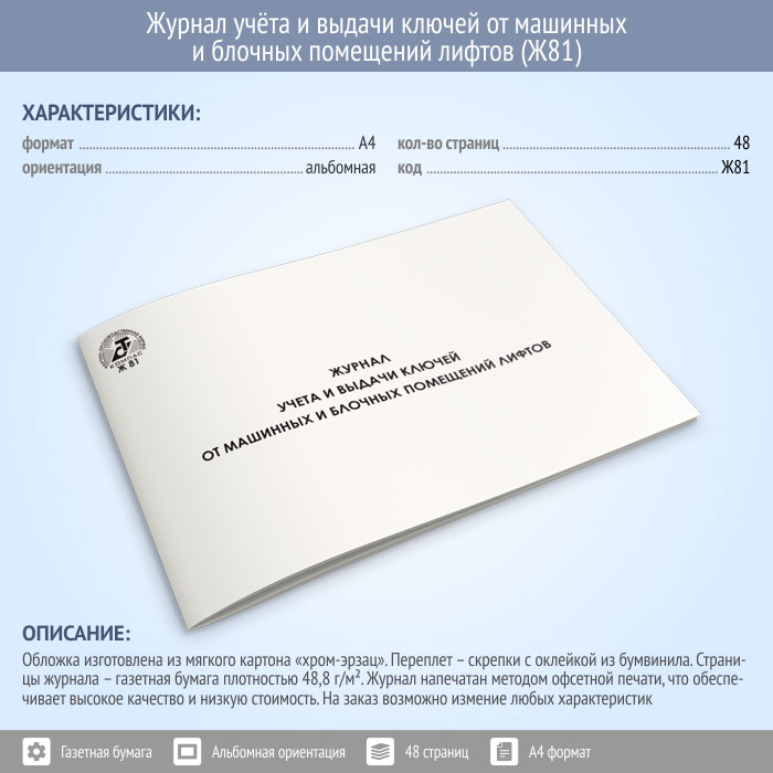 Журнал учета и выдачи ключей от машинных и блочных помещений лифтов (48 стр., Ж81) в Бердске купить