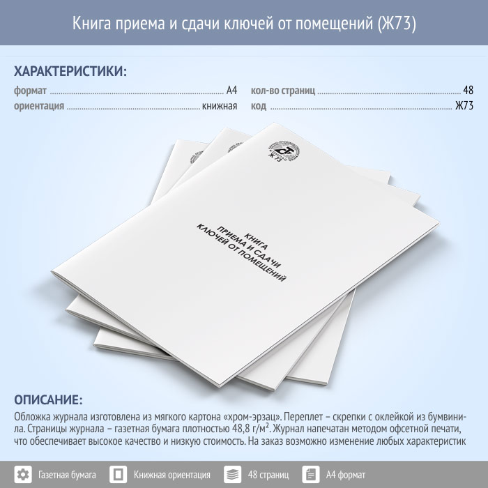 Книга приема и сдачи ключей от помещений (48 стр., Ж73) в Бердске купить