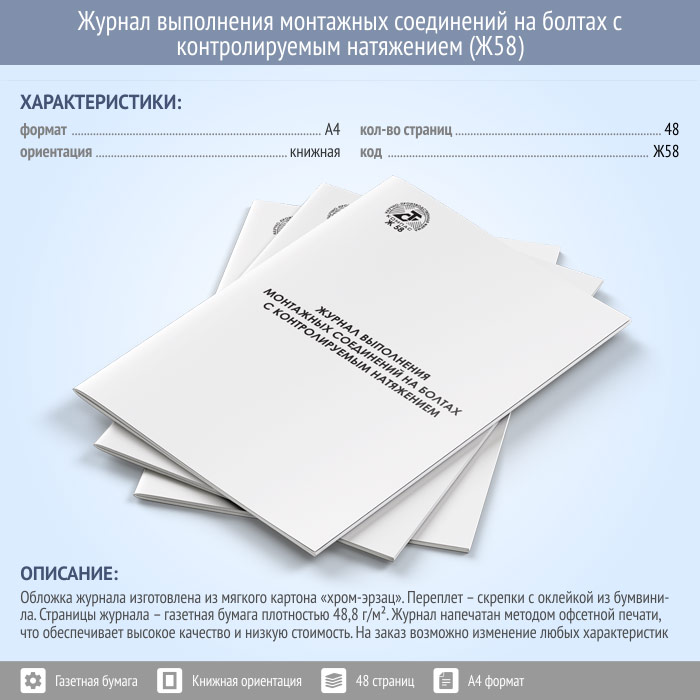 Журнал выполнения монтажных соединений на болтах с контролируемым натяжением (48 стр., Ж58) в Бердске купить