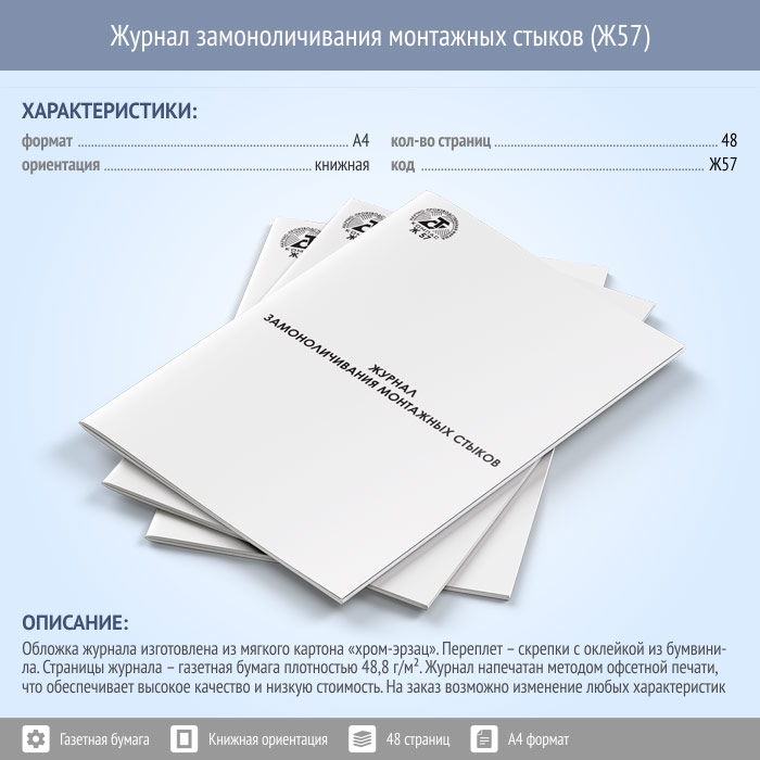 Журнал замоноличивания монтажных стыков (48 стр., Ж57) в Бердске купить