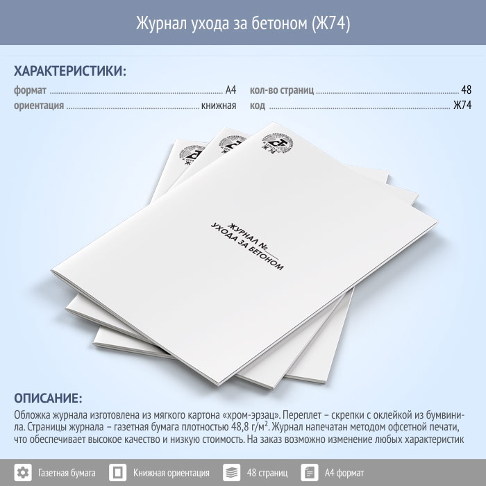 Журнал ухода за бетоном (48 стр., Ж74) в Бердске купить
