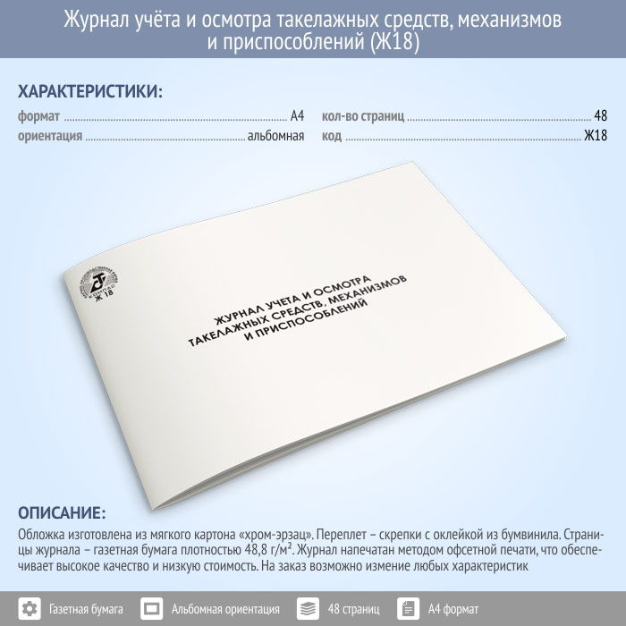 Журнал учета и осмотра такелажных средств, механизмов и приспособлений (48 стр., Ж18) в Бердске купить