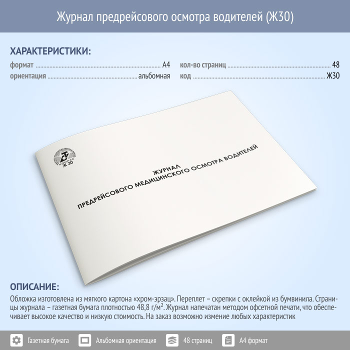 Журнал предрейсового осмотра водителей (48 стр., Ж30) в Бердске купить
