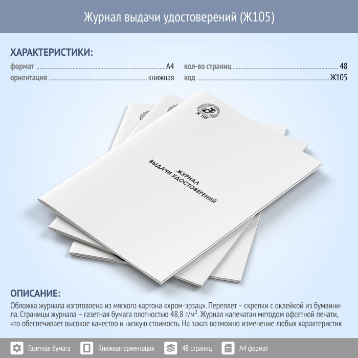 Журнал выдачи удостоверений (48 стр., Ж105) в Бердске купить