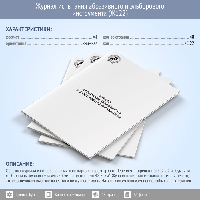 Журнал испытания абразивного и эльборового инструмента (48 стр., Ж122) в Бердске купить